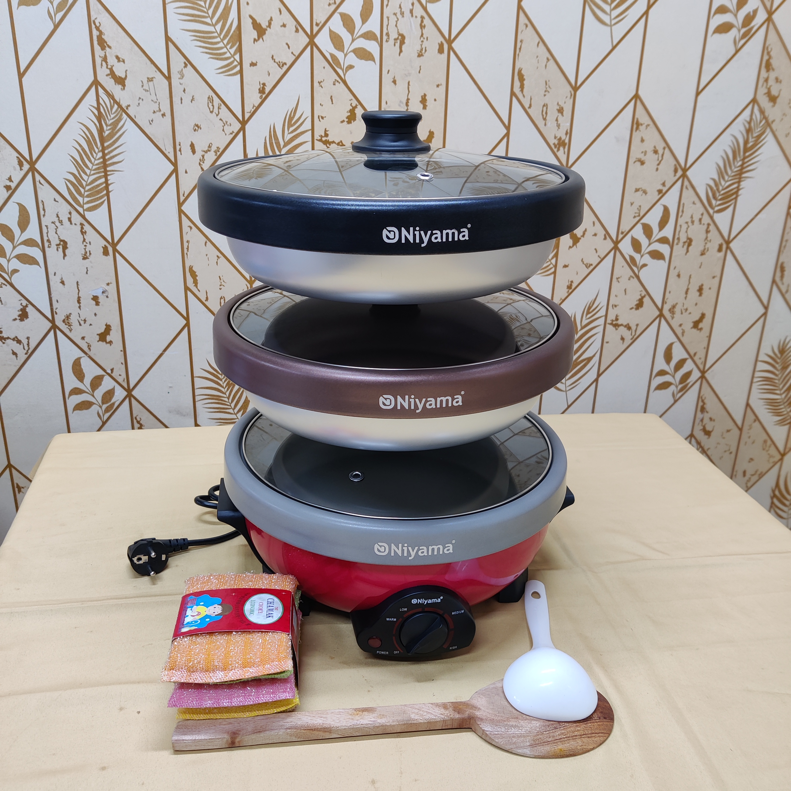 নিয়ামা মাল্টি কুকার ৩ হাড়ি ৩ ঢাকনা সাড়ে ৫ লিটার প্রাইজ মাত্র ৫৮০০ ৳